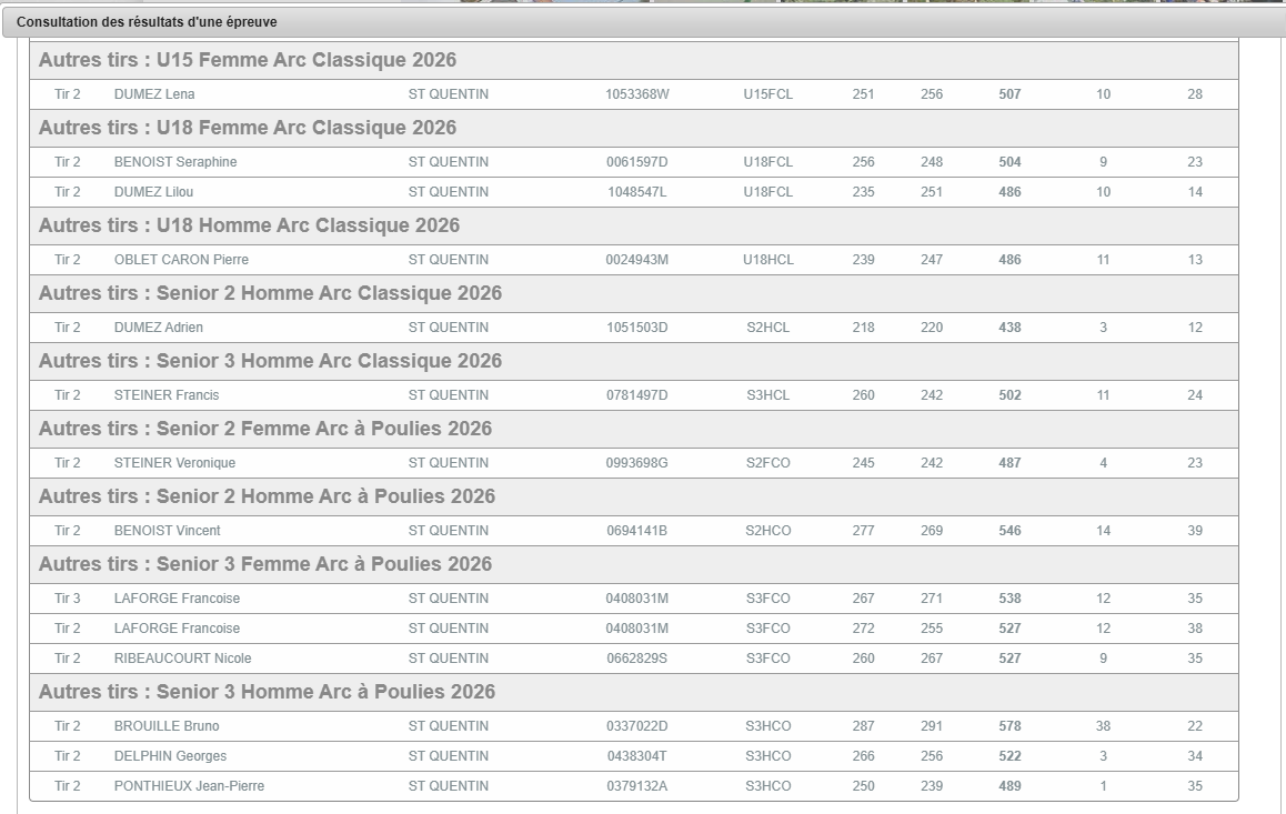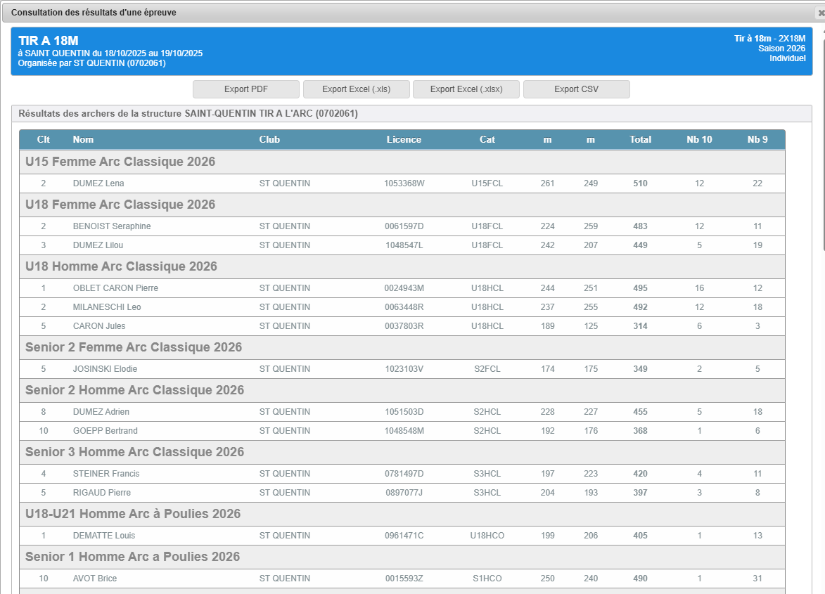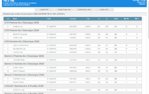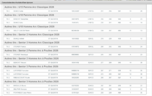 Veuillez trouver un relevé par sexe et par armes dans les différentes catégories pour les disciplines SALLE, TAE (ex fédéral), TAE Inter (Ex FITA), Campagne, Nature et 3D.