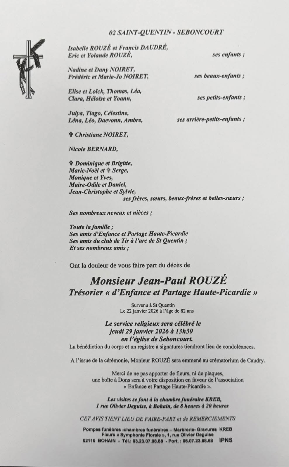 En ces pénibles circonstances, le Club SAINT QUENTIN TIR A L'ARC présente ses plus sincères condoléances à toute la famille.