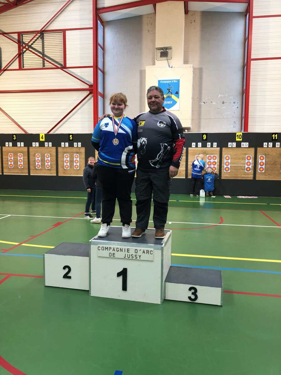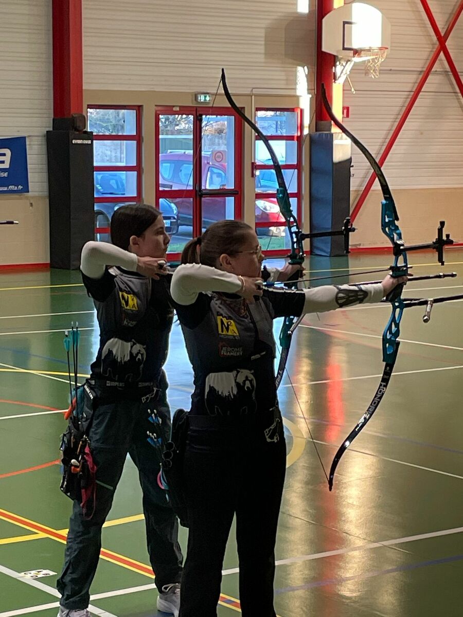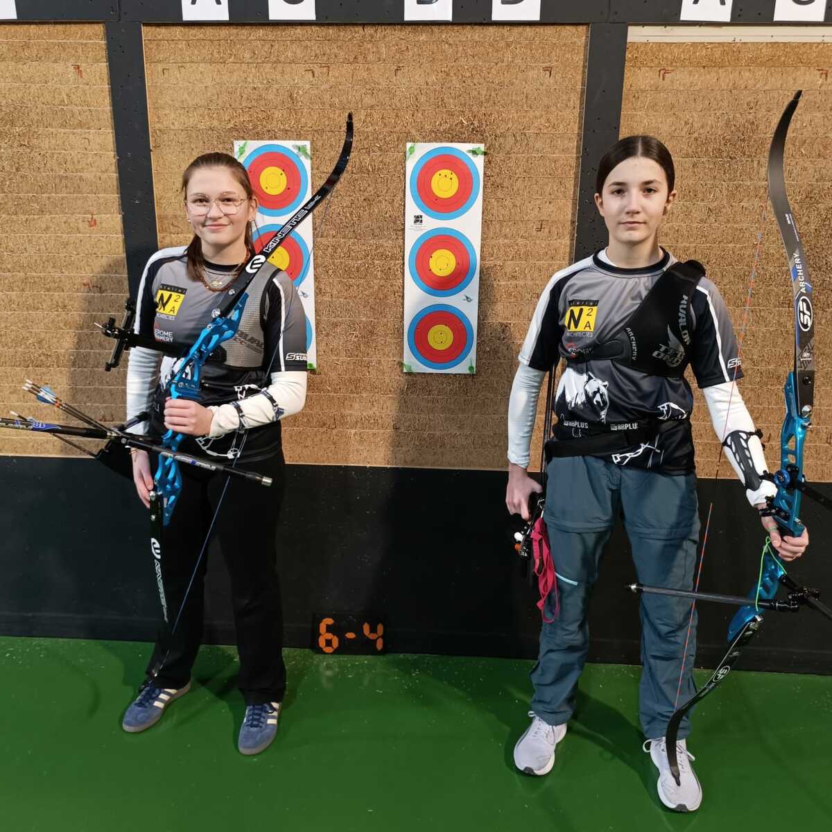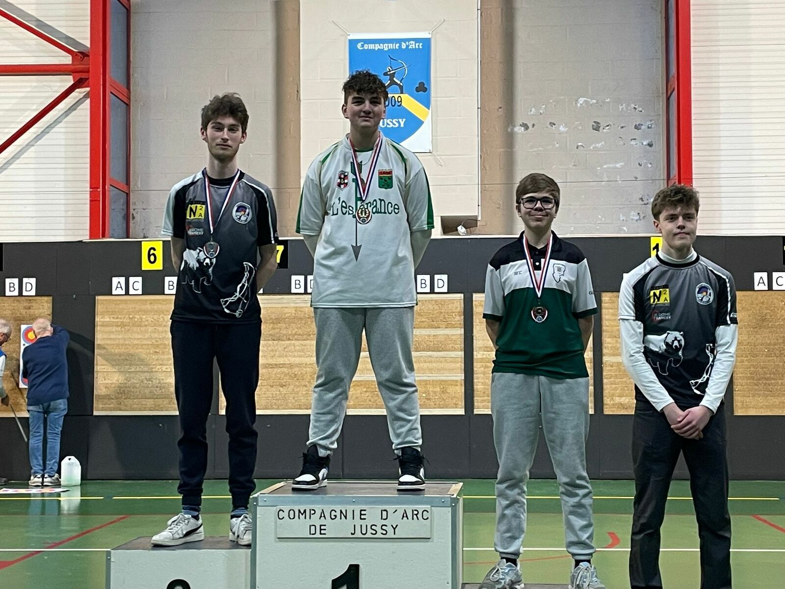 Lilou C en U18F Bare Bow et Louis D en Scratch U18-U21 Homme Compound montent directement sur la deuxième marche du podium sans phase finale.