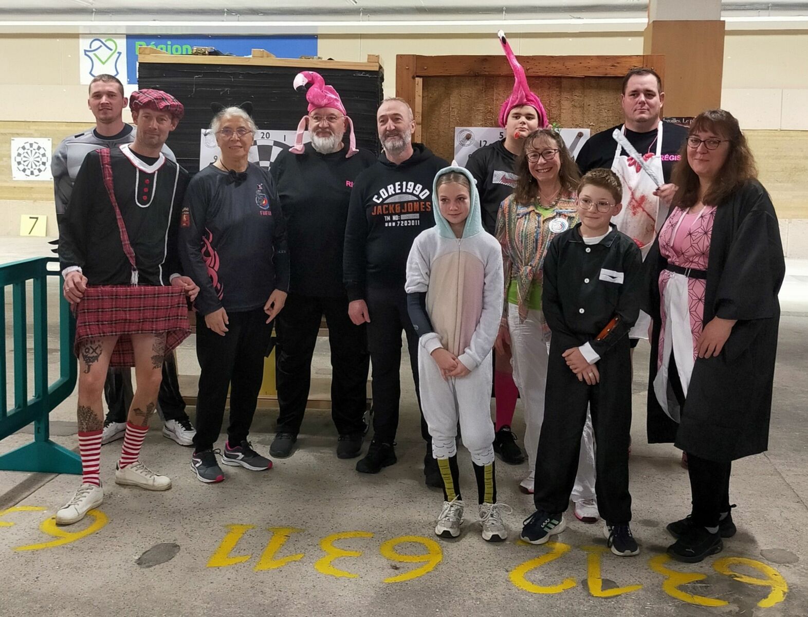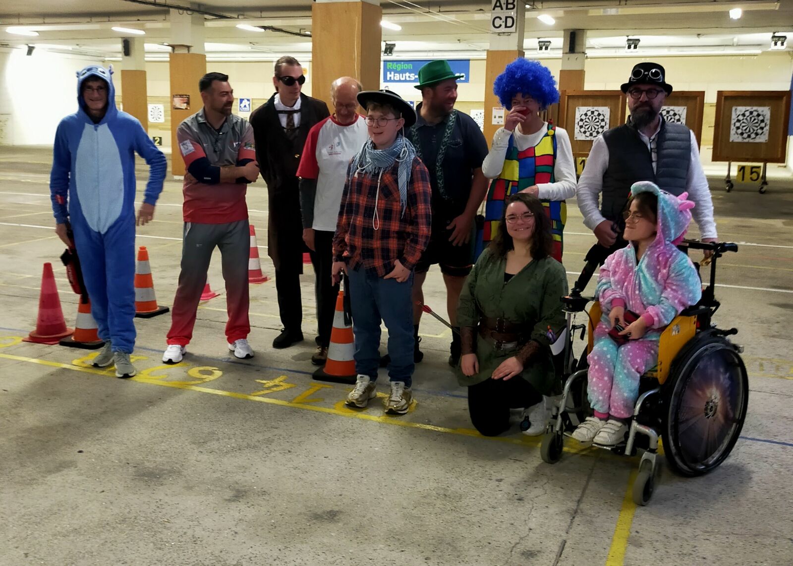 Pixou, grand ordonnateur de la compétition accueille ensuite tout ce beau monde sur le pas de tir, donne les dernières consignes pendant que sa troupe de bénévoles se met en place. François, notre vénérable, à la logistique et l'administratif, Pierre et Georges au buzzer et entretien de la ciblerie, Bruno, Vincent, Bertrand et Jean Paul au pas de tir débutants, Cathy et Nicole aux enveloppes, Carmen Christian sont déjà en cuisine avec leurs assistants Isabelle et Fabrice, Françoise et Nicole au greffe, les barmen Véronique, Francis et Mickaël dans les starting blocks au bar, Sylvie au marché de Noël, Maxime venu en renfort au bar et au comptage des points du pas de tir à 15m.