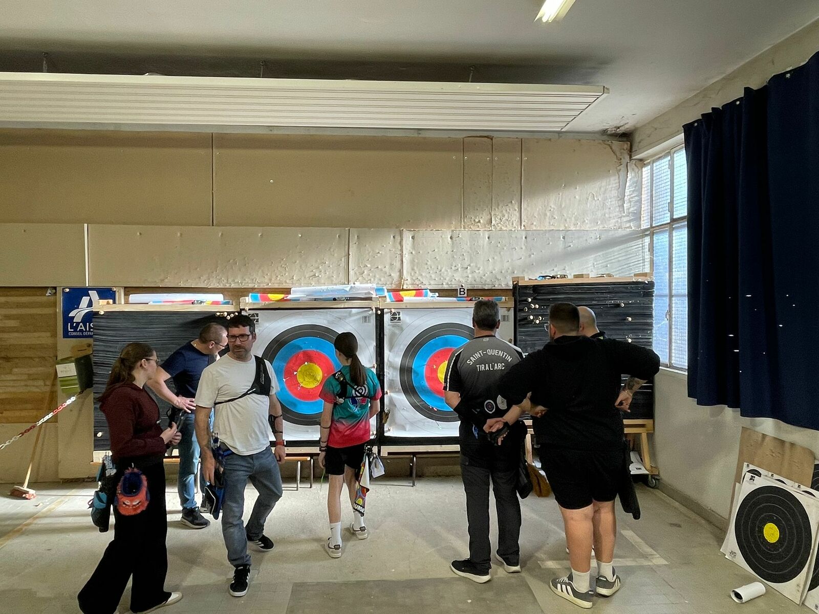Mercredi en fin d'aprés midi un groupe d'amis archers de Saint quentin tir à l'Arc se sont retrouvés à la salle pour un entraînement "compèt".