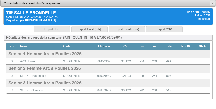 Veuillez trouver un relevé par sexe et par armes dans les différentes catégories pour les disciplines SALLE, TAE (ex fédéral), TAE Inter (Ex FITA), Campagne, Nature et 3D.