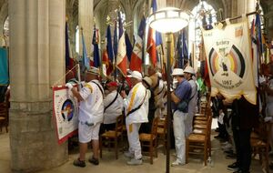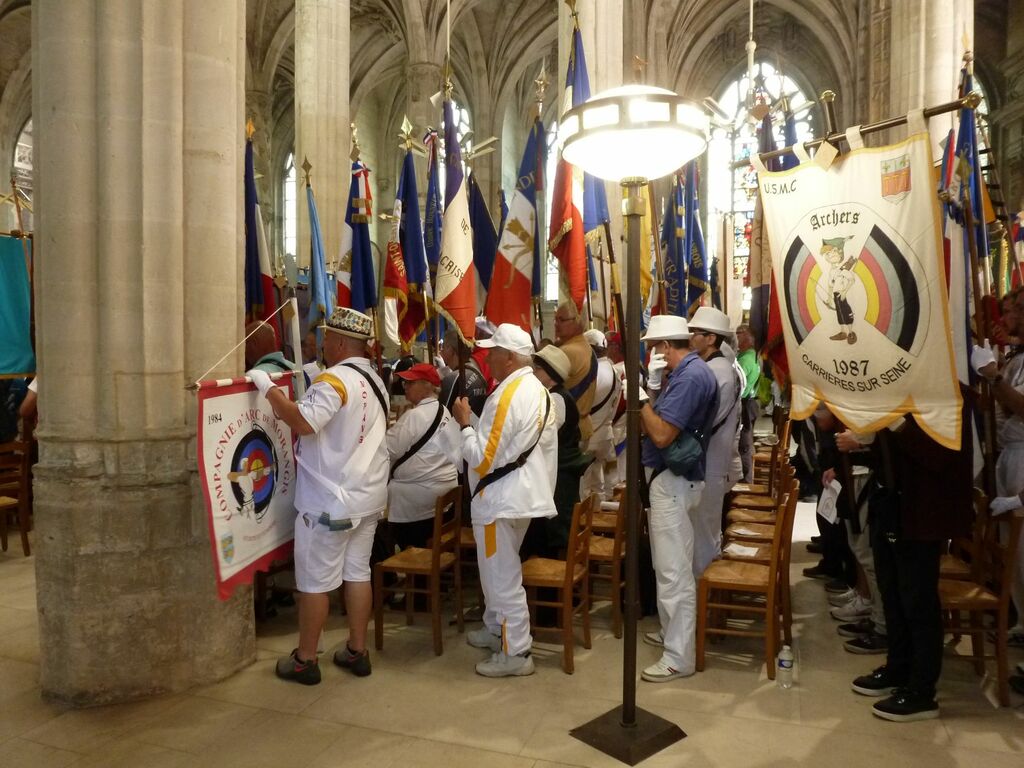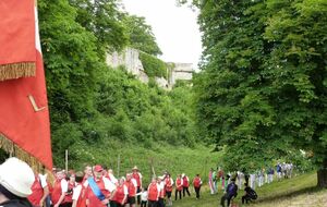 Le soleil était de la partie. Le matin le petit groupe a déambulé dans le beau marché moyenâgeux organisé au sein de la ville aprés avoir inscrit le drapeau au greffe. Puis ce fut le défilé dans les rues et chemins de Gisors, pour terminer par la messe à l'entrée de laquelle le numéro du drapeau est confirmé.