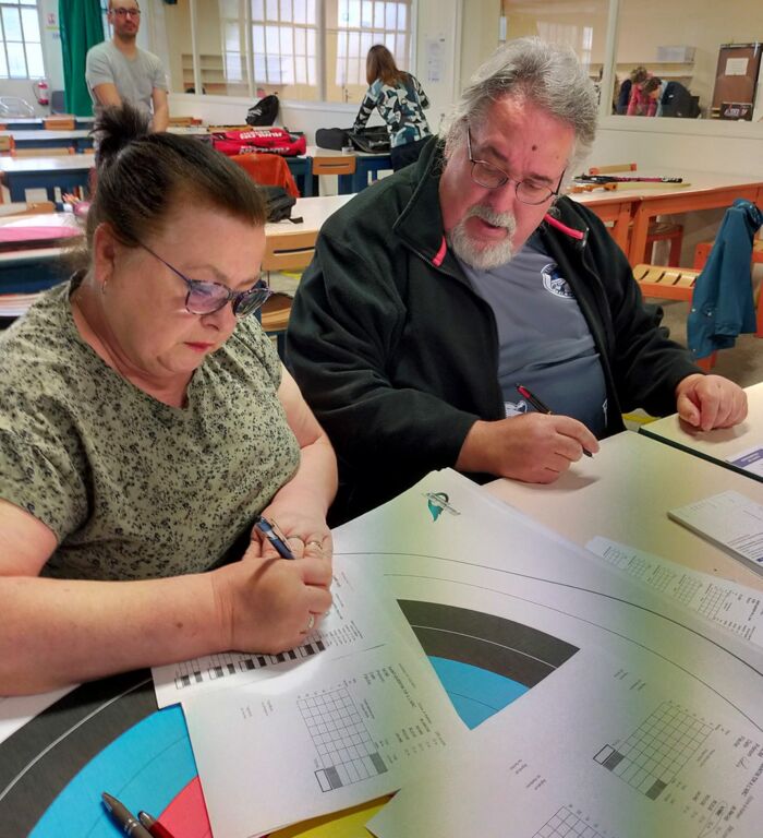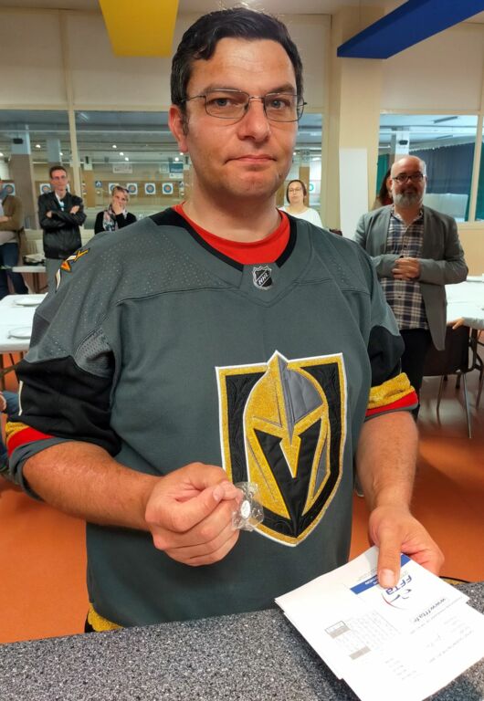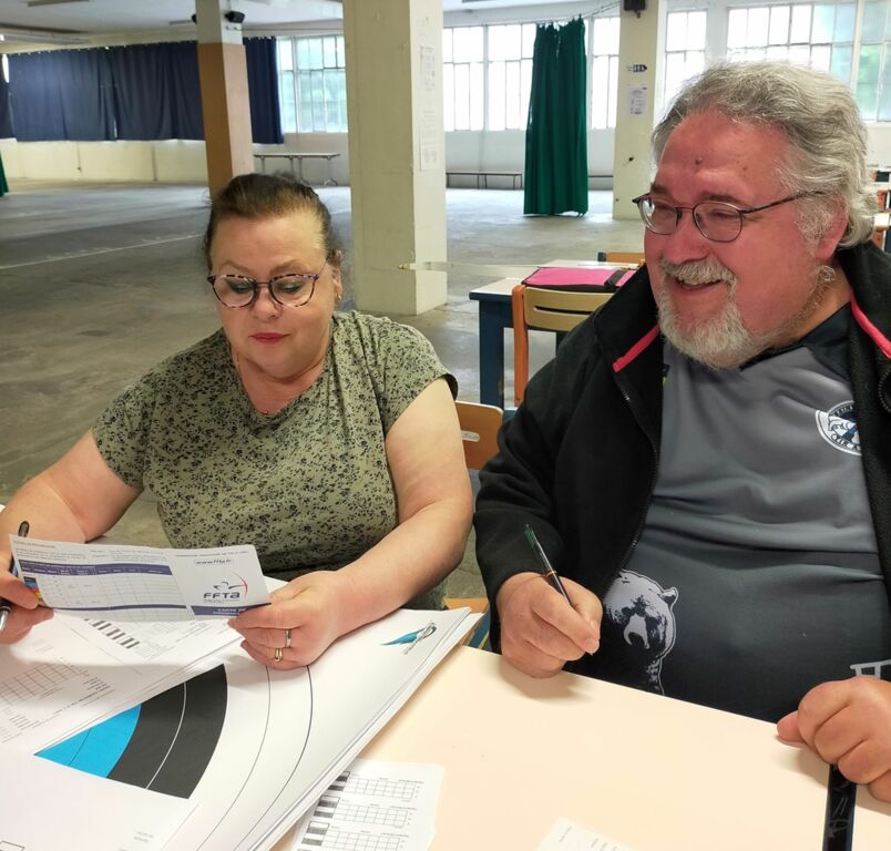 Aprés le petit café de bienvenue servi par Cathy et Christian, Carmen se charge des inscriptions et Georges organise les pas de tir.. Une affaire qui roule.