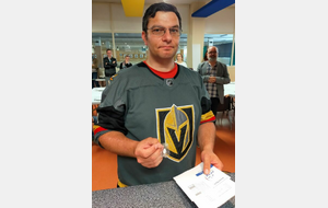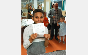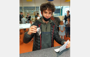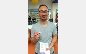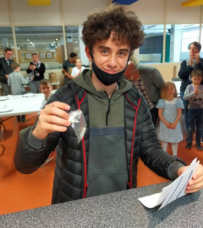 Nathanaël valide ses plumes blanche, noire, bleue et rouge.