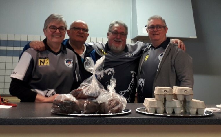 La joyeuse équipe de SQTA repartait avec 4m17 de boudin et 24 oeufs. Ouf, ça fera assez pour ce midi.