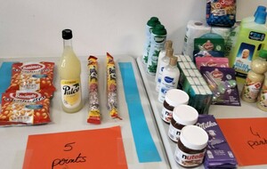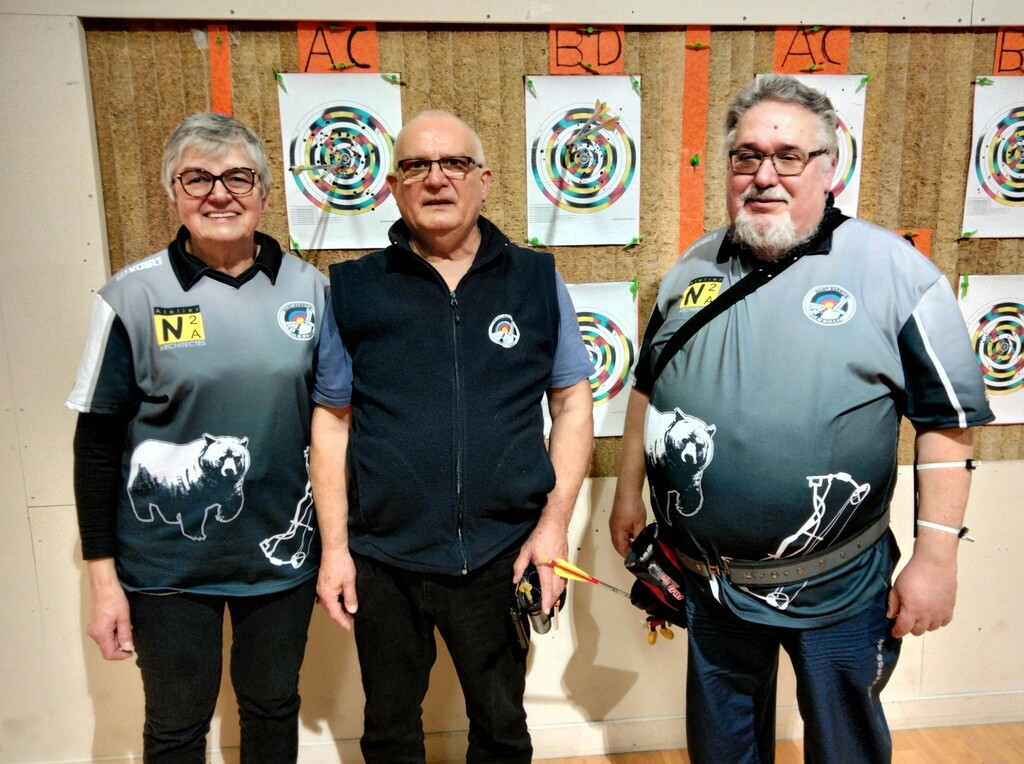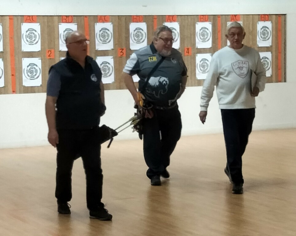 Nicole, François et Georges, les archers férus de tirs "alimentaires" se sont rendus à Chiry Ourscamps pour le tir aux lots. Sacrées cibles colorées, pas évidentes à viser. Aprés avoir gagner des points à la sueur de leurs flèches, les trois archers qui finissaient quasimment à égalité de points ont fait leurs "achats d'épicerie".