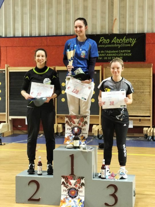 A ce jeux Cindy montait sur la 3 ème marche du podium femmes arc classique scratch.