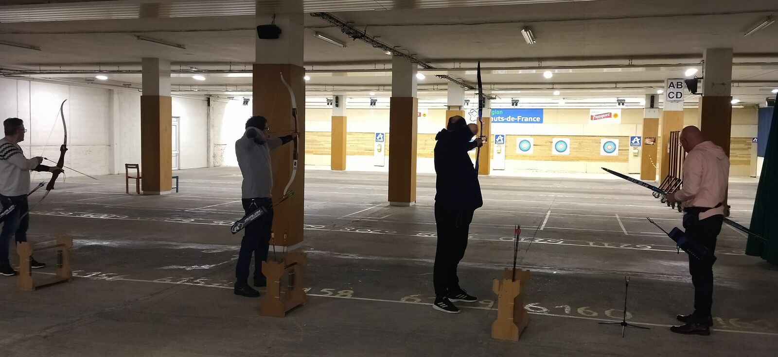 Après quelques semaines a s'initier à la tenue de l'arc, à chercher à grouper les flèches et un passage de flèches pour obtenir la flèche blanche nous avons testé différentes cibles, passé d'une 80cm à une 40 cm , types de flèches pour le concours au maroilles et tir sur trispot.