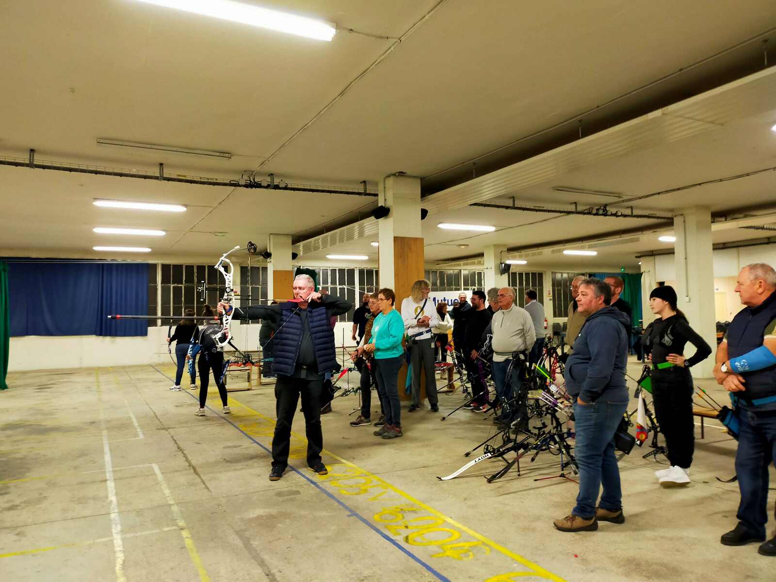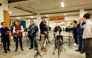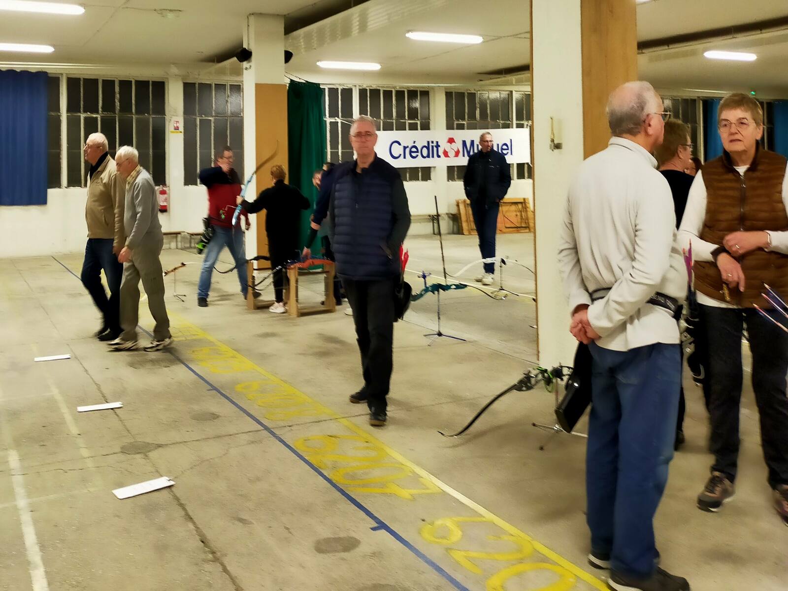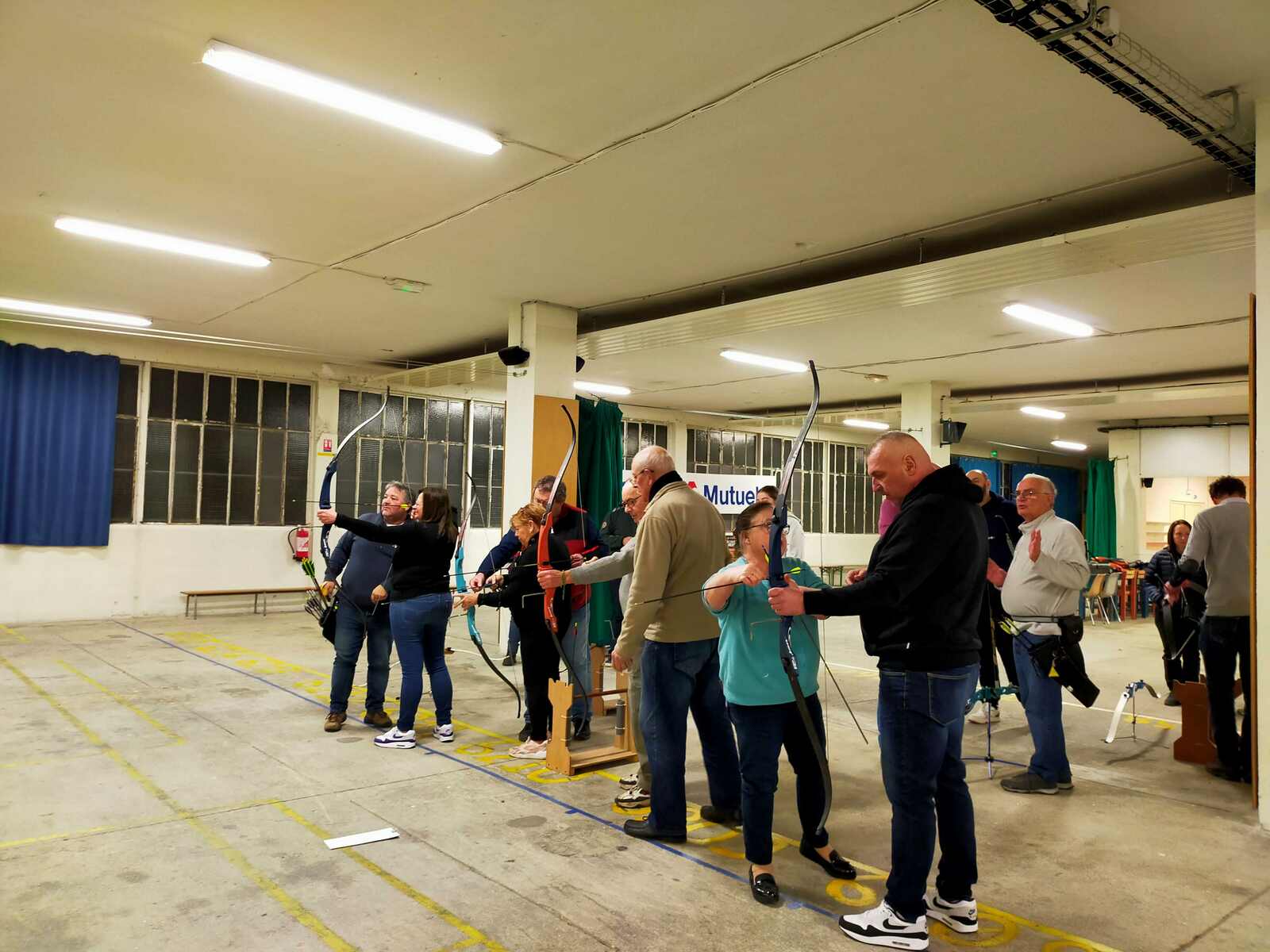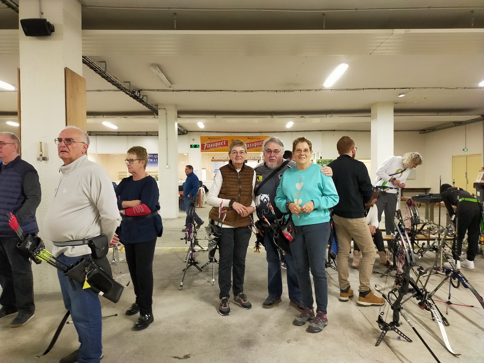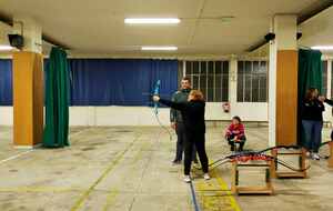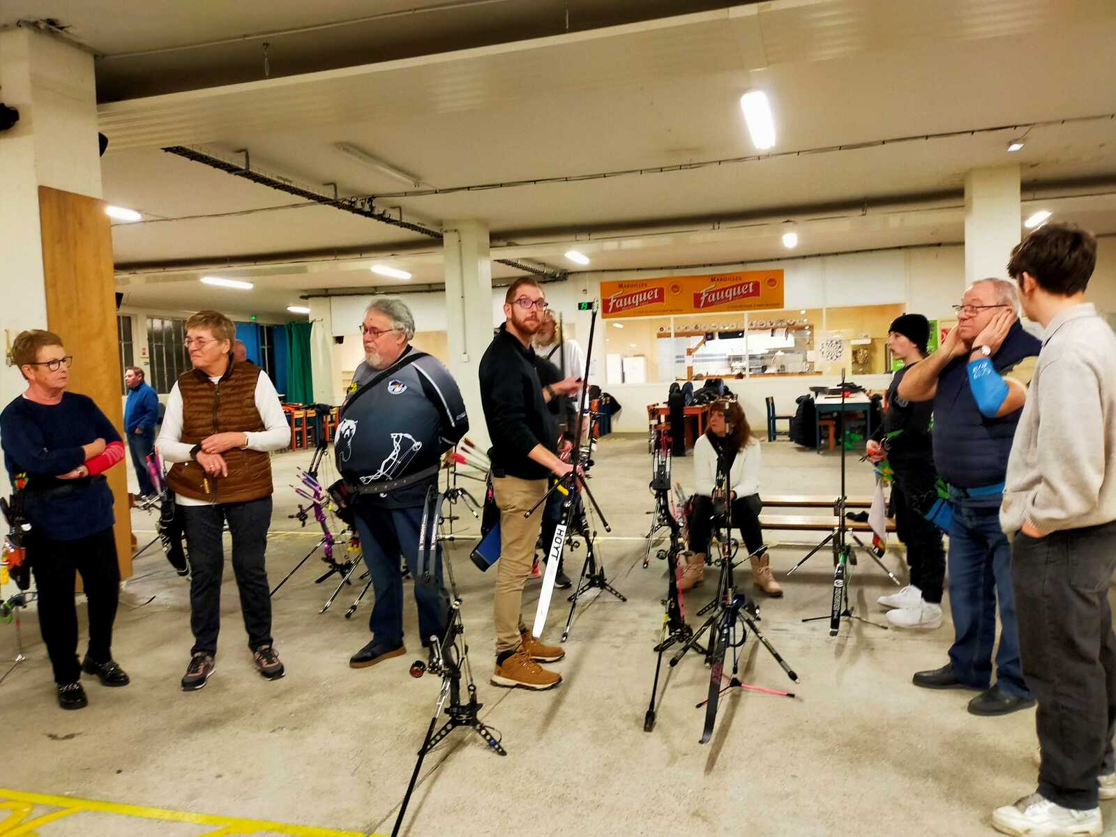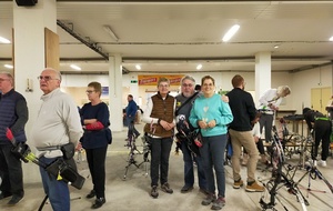 Nicole et Françoise taquinent Georges pour le perturber dans son tir. Des bénévoles n'ayant jamais tirer sont pris en charge par les autres archers. A la moitié du concours, Pixou décide de rapprocher les cibles débutants de 5 m. Deux tirs sans flêche par des compounds ont fait "rire" Bruno qui s'est chargé des réparations.