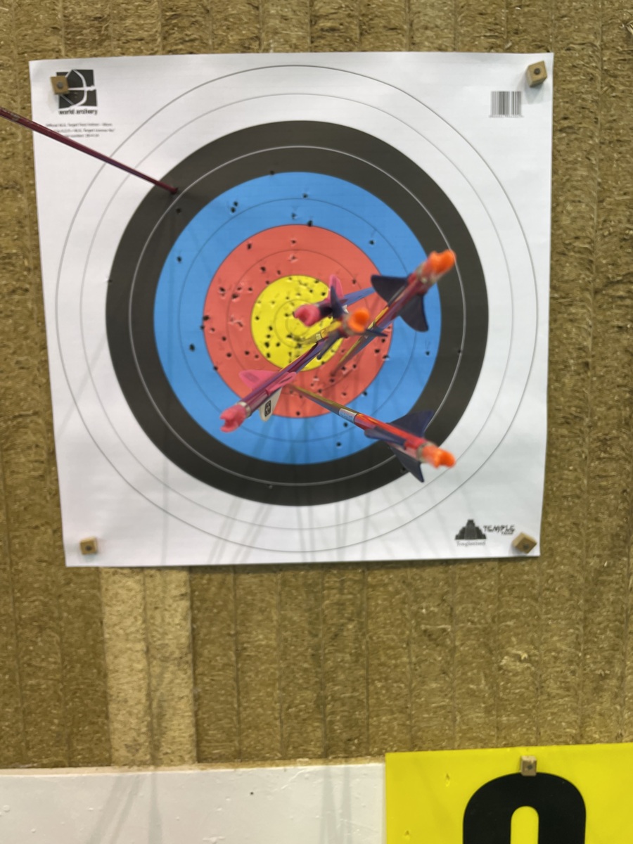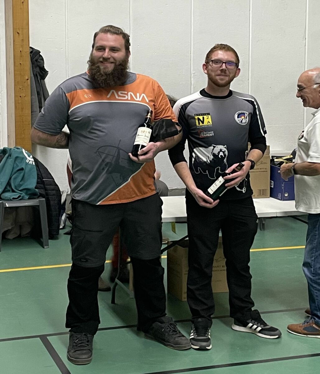 Kevin et Francis se sont lancé un défi supplémentaire. Ils ont corsé l’affaire, en réalisant leur propre FITA Salle avec leurs deux armes différentes respectives.