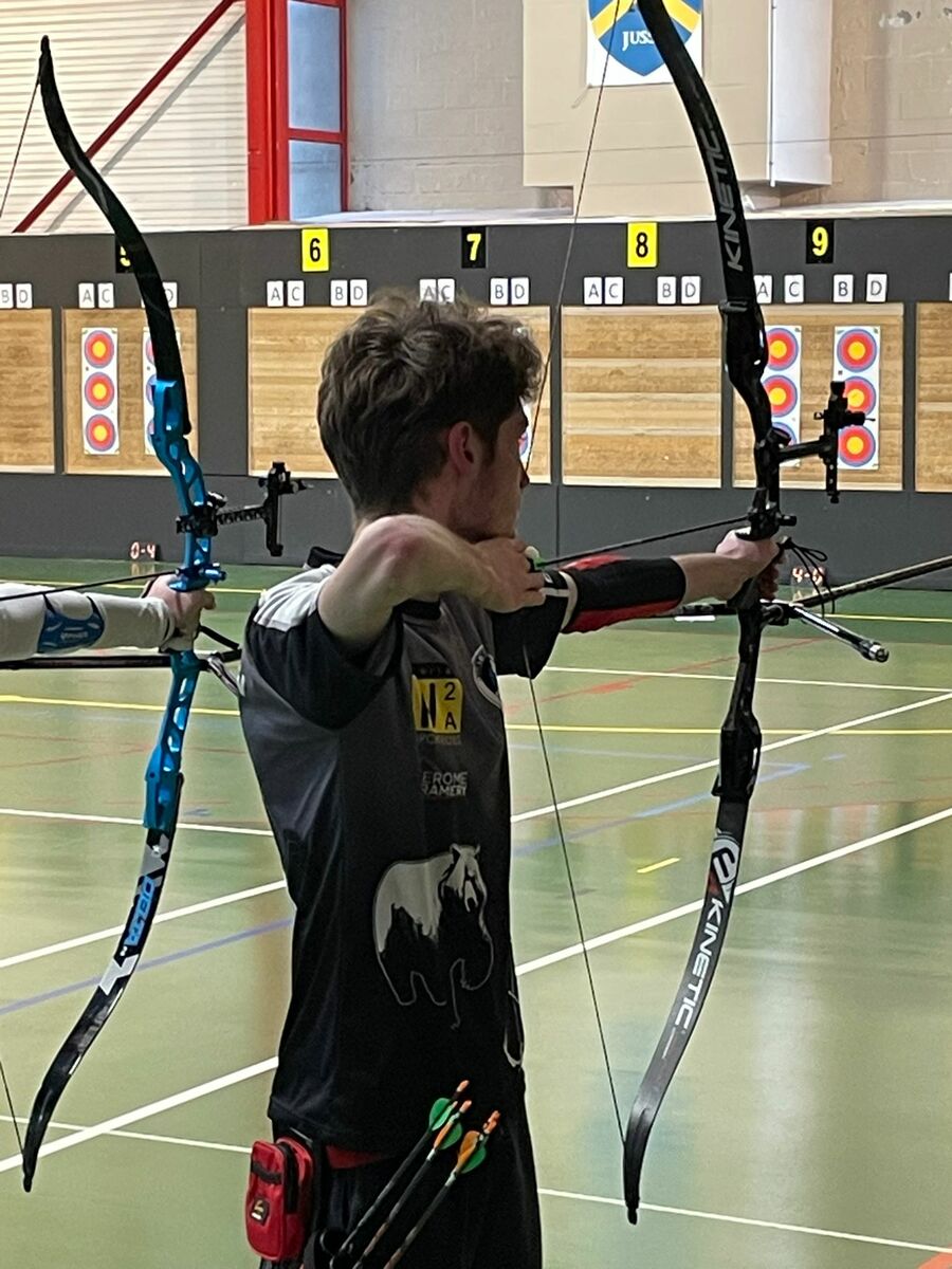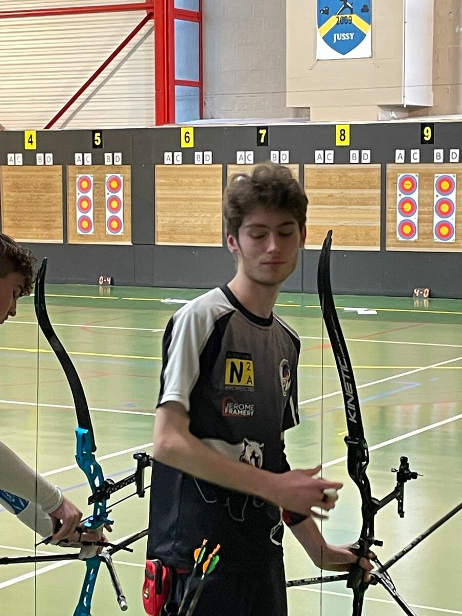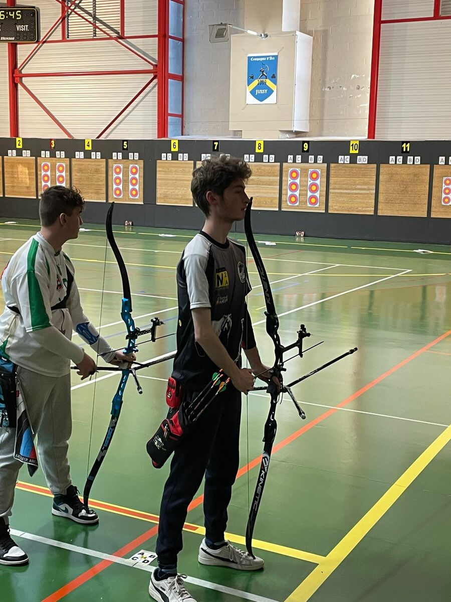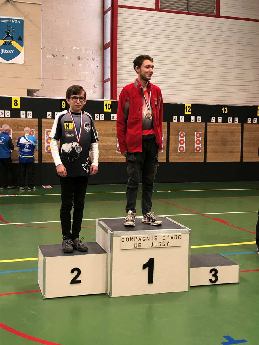 Lilou C en U18F Bare Bow et Louis D en Scratch U18-U21 Homme Compound montent directement sur la deuxième marche du podium sans phase finale.