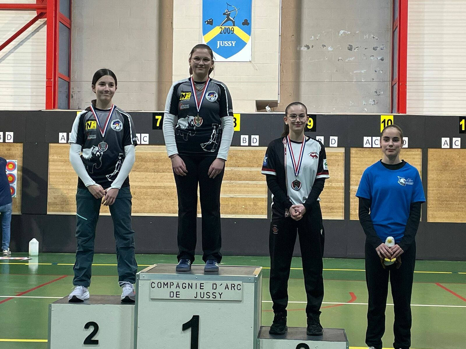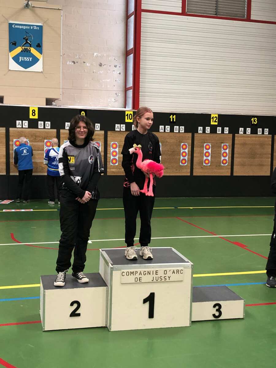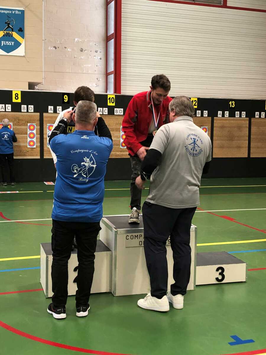 Lilou C en U18F Bare Bow et Louis D en Scratch U18-U21 Homme Compound montent directement sur la deuxième marche du podium sans phase finale.
